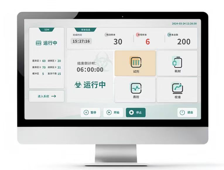 仪器的启动源于软件,AutoChem B2000的屏保界面容纳了仪器常规运行中所有需要被重点关注的信息,包括样本管理器的状态、样本信息的汇总、常规的试剂与耗材以及质控和耗材检测预警。