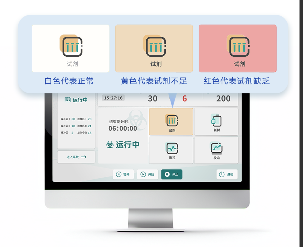 如当试剂余量不足报警时,可直接点击屏保中的试剂位置,可直接链接到试剂预约加载界面。